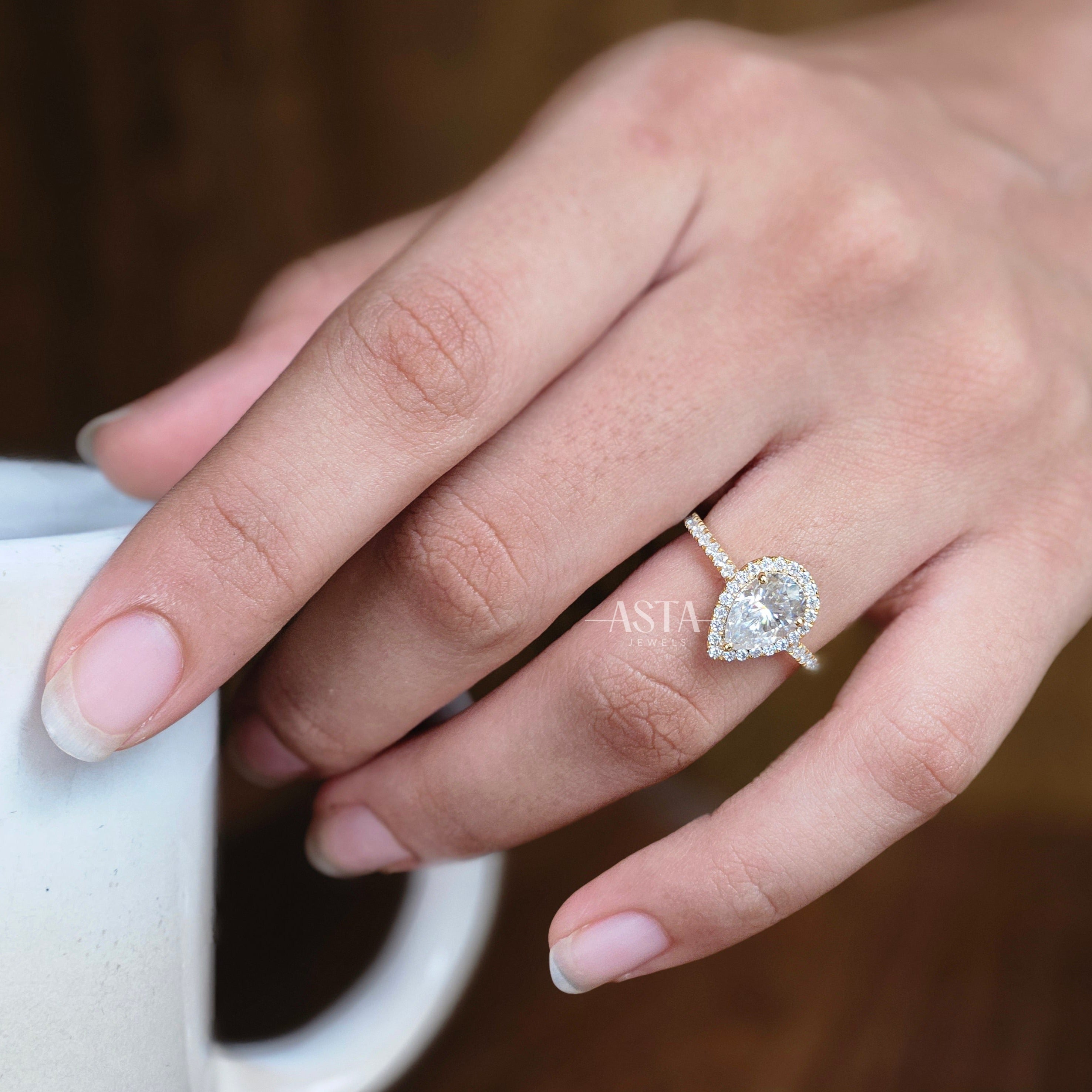 Skybound Pear Halo Ring